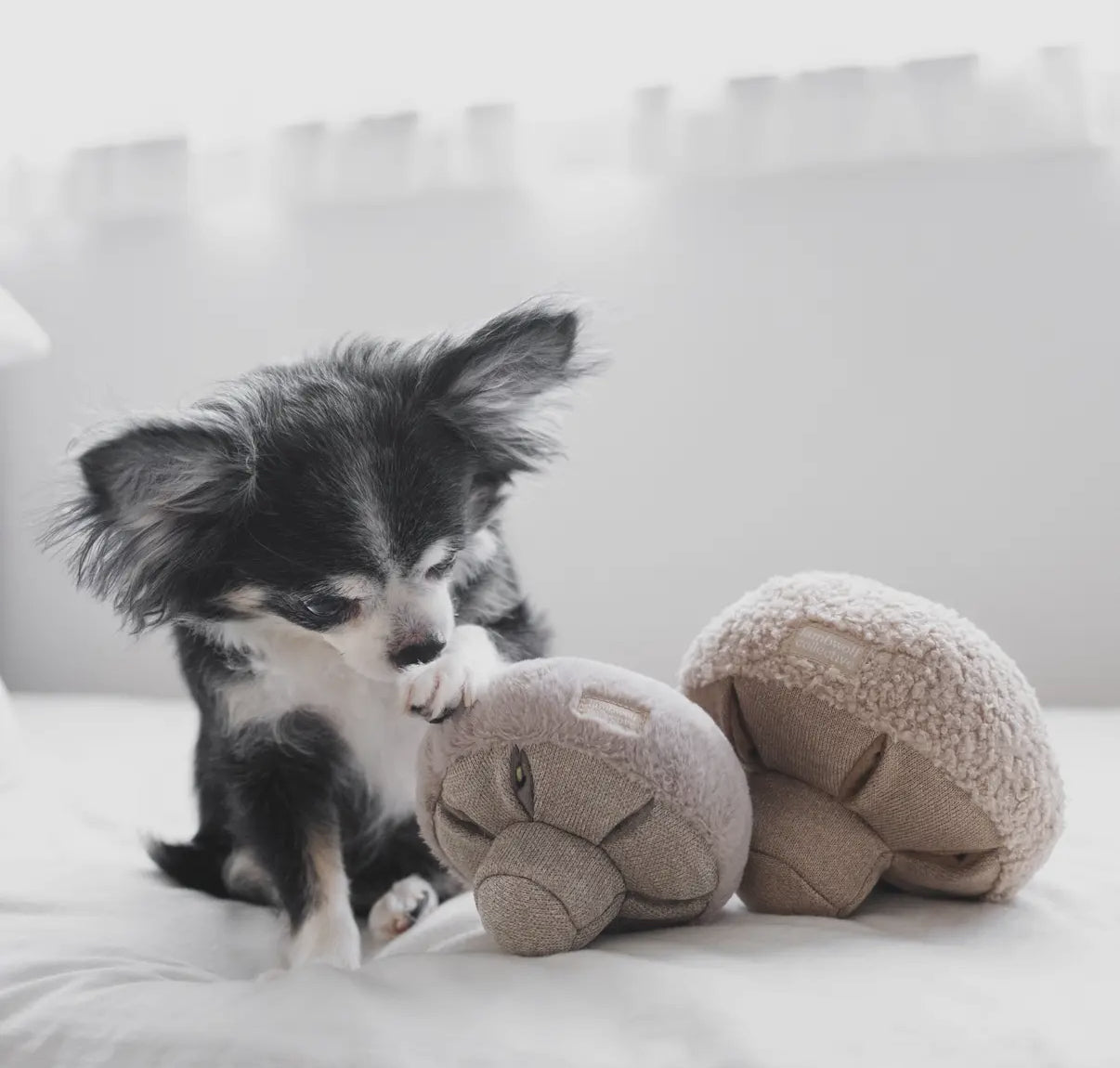 GUU is a button mushroom with little slit pockets to hold rewards. The round, unstable bottom adds on to the challenge and they are just perfect to play fetch with!